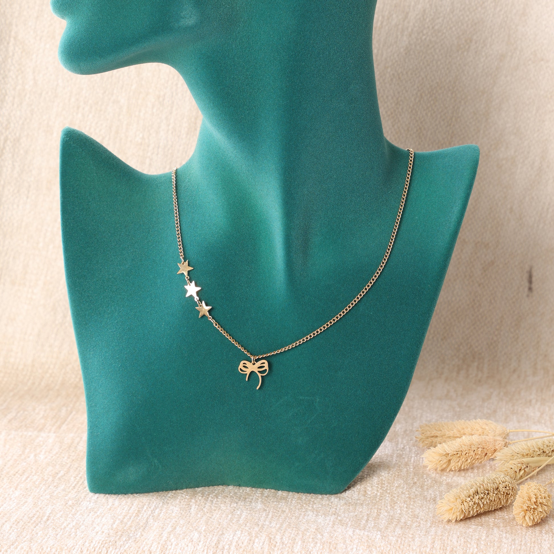 هذا العقد مصنوع من الستانلس ستيل 316 عالي الجودة، مما يضمن لكِ قطعة مجوهرات تدوم طويلاً وتحافظ على بريقها الذهبي دون أن يتغير لونها.