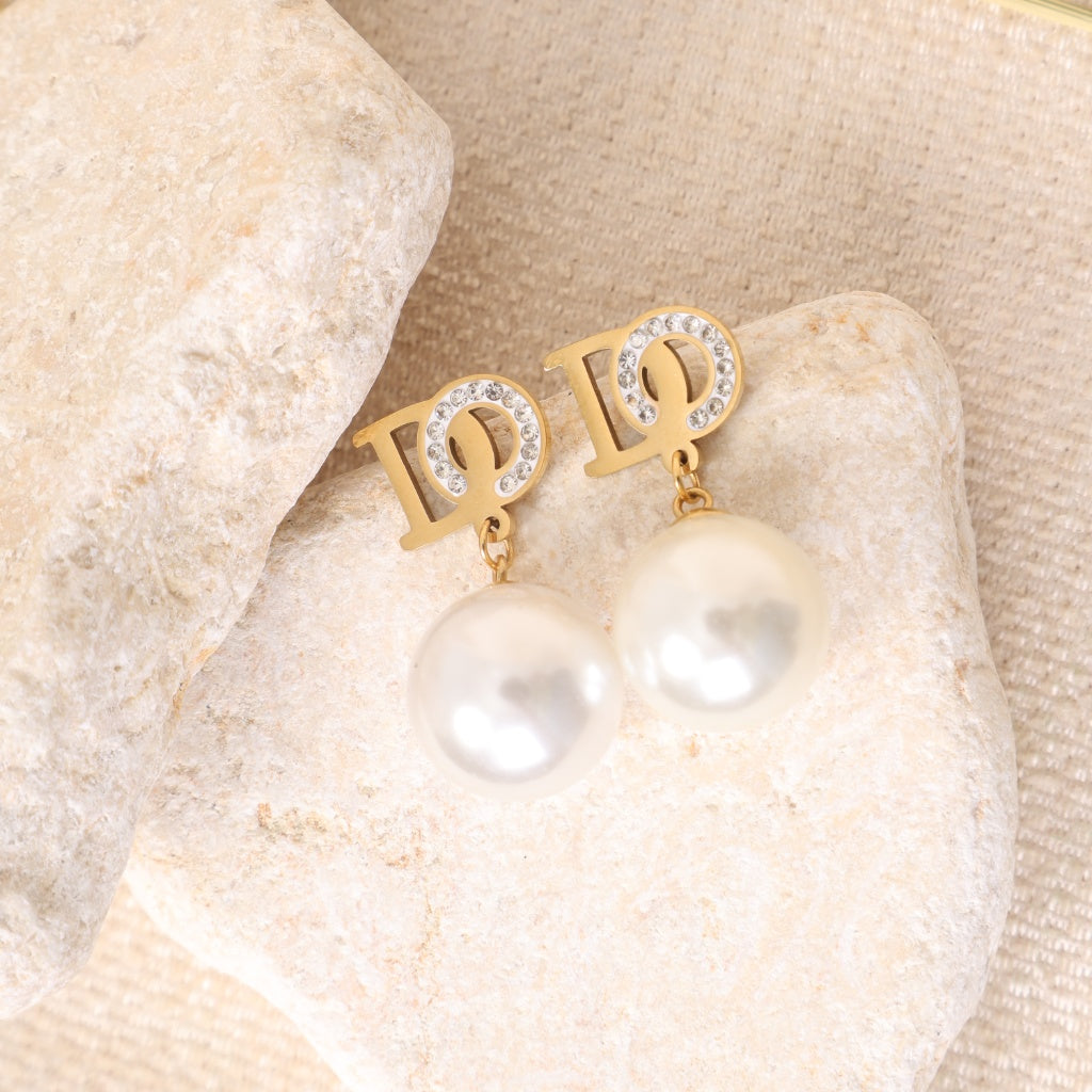 أضيفي لمسة من الأناقة الكلاسيكية إلى إطلالتك مع هذا الحلق الذهبي الساحر المستوحى من علامة ديور. يتميز بتصميمه الذي يجمع بين شعار العلامة الأيقوني بحرفي CD، المرصع بالكامل بالكريستال اللامع. وتتدلى من كل قطعة لؤلؤة بيضاء كبيرة وناعمة، مما يضفي عليها مظهراً ملكياً وفخماً. هذا الحلق هو قطعة مثالية تعبر عن الأناقة والذوق الرفيع.