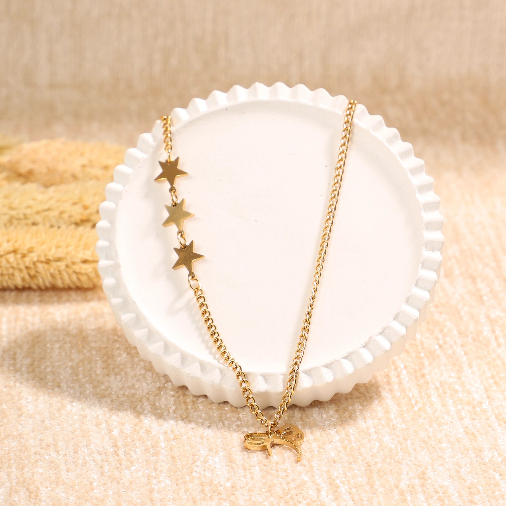 Golden Butterfly and Stars Necklace