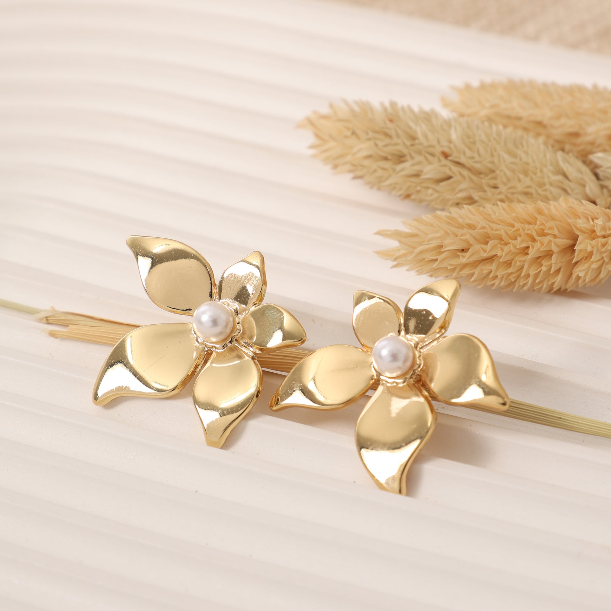 ضيفي لمسة من الأناقة الناعمة المستوحاة من الطبيعة إلى إطلالتك مع هذا الحلق الذهبي الساحر. يتميز بتصميمه الذي يحاكي زهرة أنيقة ببتلات مصقولة ولامعة، تتوسطها لؤلؤة بيضاء ناعمة تضفي عليه مظهراً رقيقاً وأنثوياً. هذا الحلق هو قطعة مميزة تعبر عن الرقة والجمال.