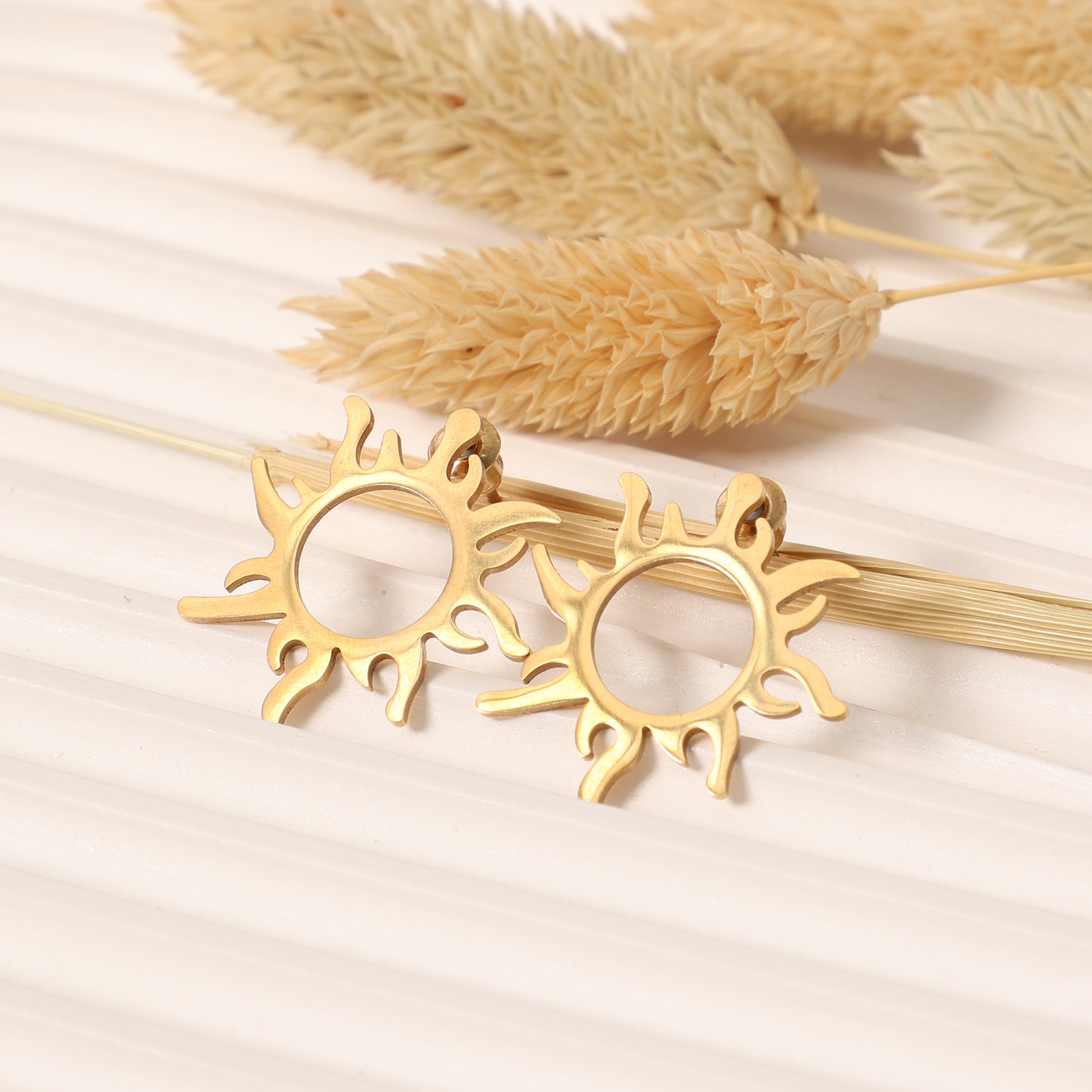 أشرقي كالشمس مع هذا الحلق الذهبي الفريد. يتميز بتصميمه الذي يجسد الشمس بأشعتها المتوهجة، مما يمنحه مظهراً جريئاً ولافتاً للأنظار. هذا الحلق هو قطعة مميزة تعكس شخصيتك المحبة للتجديد والجمال.