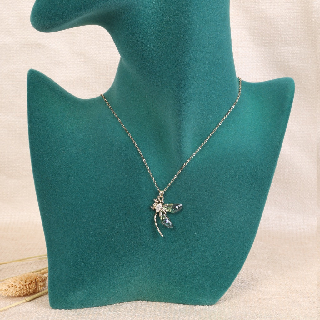 أضيفي لمسة من الأناقة الساحرة المستوحاة من الطبيعة إلى إطلالتك مع هذا العقد الفضي الفريد. يتميز بتصميمه الذي يجسد يعسوباً أنيقاً بأجنحة مرصعة بالكريستال المتلألئ، مما يمنحه مظهراً حالماً وبراقاً. هذه القلادة هي قطعة مثالية تعبر عن شخصيتك الرقيقة والمحبة للجمال.