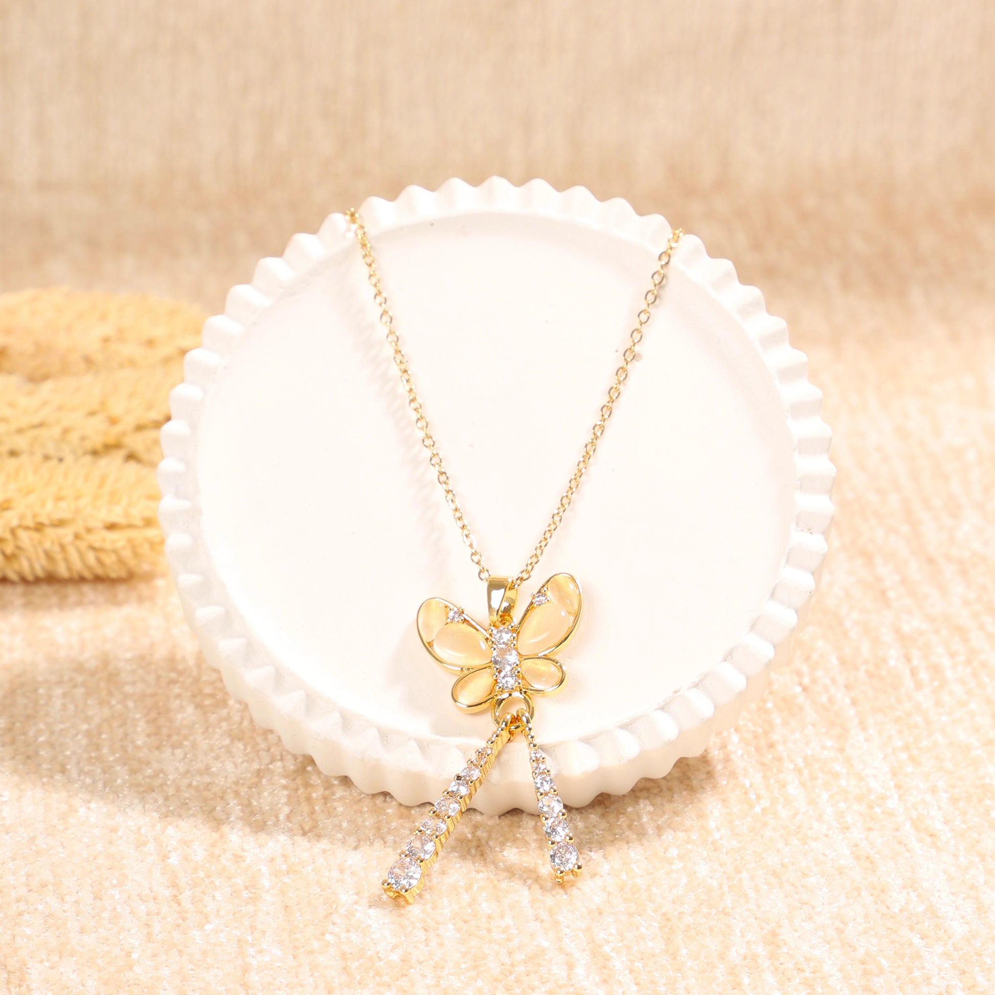 أضيفي لمسة من الأناقة والجاذبية إلى مظهرك مع هذا العقد المميز. يتميز بتصميمه الذي يجمع بين رقة الفراشة وبريق الكريستال، حيث تتوسطه قلادة على شكل فراشة أنيقة، وتتدلى منها قطعتان مرصعتان بالكامل بالكريستال اللامع. هذه التفاصيل تمنح العقد مظهراً حيوياً وعصرياً، يناسب الإطلالات النهارية والمسائية.