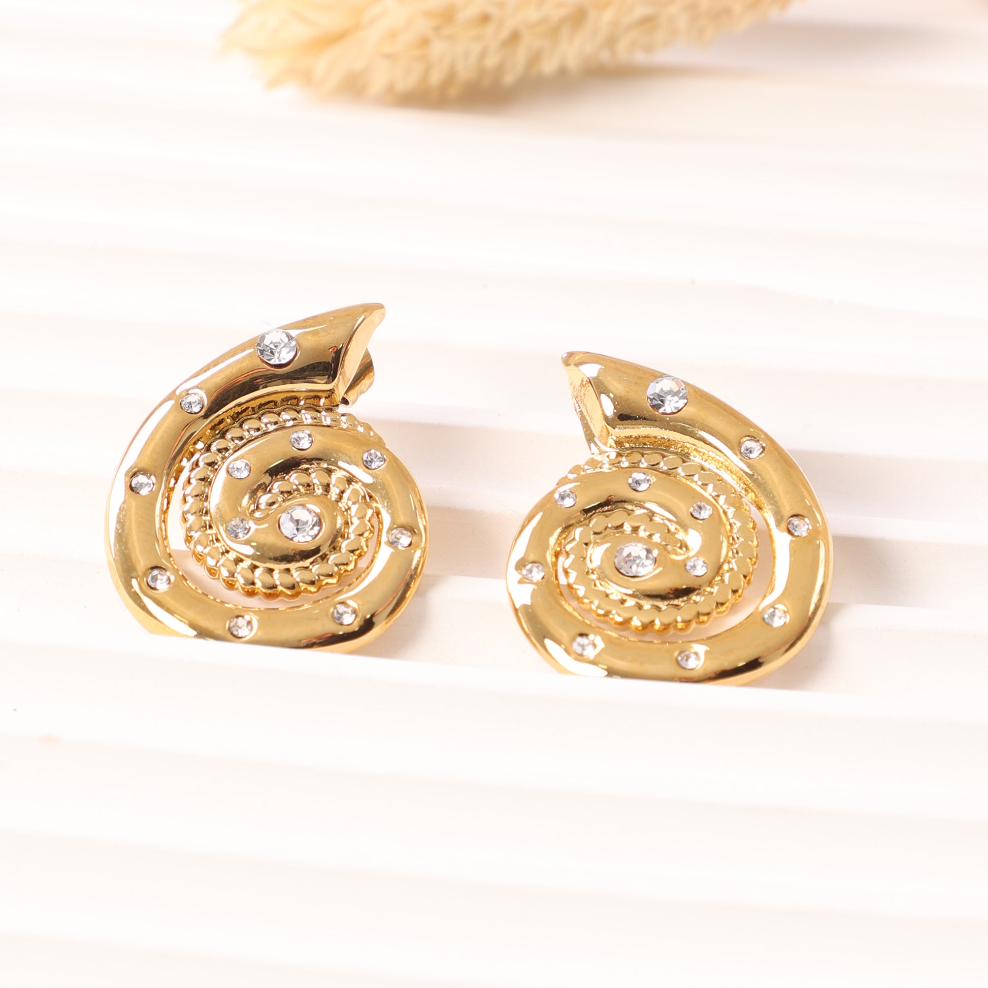 ضيفي لمسة من الفخامة المستوحاة من البحر إلى إطلالتك مع هذا الحلق الذهبي الفريد. يتميز بتصميمه الذي يحاكي صدفة حلزونية أنيقة، مرصعة بالكامل بفصوص كريستال لامعة تتبع شكلها الحلزوني. هذا الحلق هو قطعة فنية تلفت الأنظار ببريقها وتصميمها الفريد.