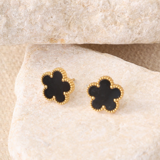 ضيفي لمسة من الأناقة الخالدة إلى إطلالتك مع هذا الحلق الذهبي الساحر، المستوحى من تصميمات "فان كليف" الأيقونية. يتميز بتصميمه الذي يجسد زهرة البرسيم الأنيقة، بقلب أسود لامع وحواف ذهبية مزخرفة، مما يمنحه مظهراً راقياً ومميزاً. هذا الحلق هو قطعة مثالية لجميع المناسبات، ويناسب الإطلالات الكلاسيكية والعصرية.
